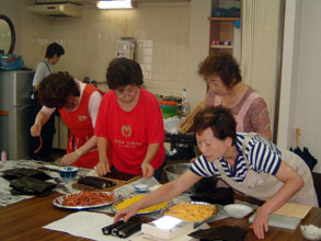 韓国料理100人分持参 婦人会生野北「故郷の家」慰問(04.6.30)