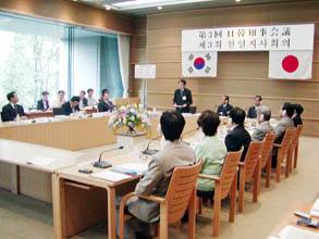 会議では「韓日の観光・文化交流の促進」をテーマに話し合われ、最近の韓流による相互交流の増加などを反映してさまざまな意見が相次いだ。なかでも、▽地方自治体間の姉妹提携事業の拡大▽共同ホームページによる情報の共有▽共同観光商品の開発▽修学旅行の相互訪問活性化による青少年交流の拡大▽自治体観光博覧会の共同開催▽05年愛知万博および12年世界海洋博覧会の開催に向けた協力体制ーなどが提案された。