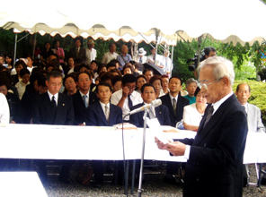 [ 浮島丸事件59周年の追悼集会(8月24日、京都府舞鶴市の殉難の碑前) ]