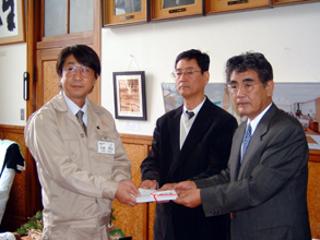 <兵庫県>民団と総連合同で 豊岡市と西脇市に義援金(04.12.22)