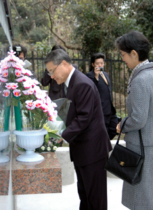 [ 追悼碑に献花する羅大使 ]
