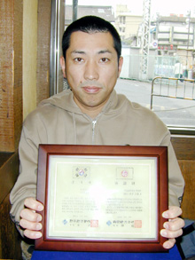 [ 感謝状を手にする田宮さん ]