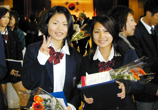 にぎやかに祝福受けて 京都韓学卒業式(05.3.16)