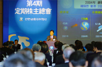 羅会長はあいさつの中で「04年は停滞した国内景気や原油価格の高騰など厳しい経済環境だったが、1兆ウォンを超す純利益を上げ、国内金融機関の中で株価上昇率が最大であった」と強調した。