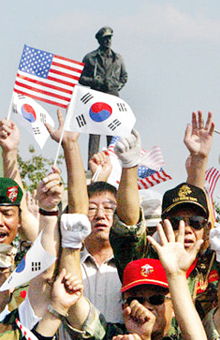仁川上陸作戦55周年を迎えた15日、仁川上陸作戦記念館で記念式が開かれたほか、仁川自由公園のマッカーサー銅像前では「銅像死守決議大会」や祈祷会などが行われた。一方、同公園では11日に銅像撤去を要求するデモが行われた。韓国政府は16日、「銅像撤去は容認しない」との立場を明らかにした。