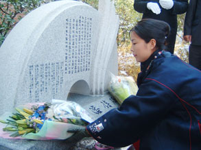 [ 詩碑に献花する韓国側関係者 ]