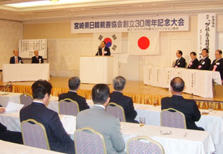 【宮崎】宮崎県日韓親善協会(小林貞雄会長)の創立30周年記念大会が17日、宮崎市内のホテルで開かれ、127人でにぎわった。自治体から安藤忠恕県知事と津村重光宮崎市長が出席。民団中央本部からは金宰淑団長がお祝いに駆けつけ、た。