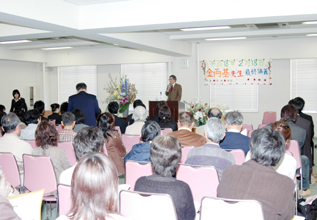 ホールには金教授の前任校の静岡県立大学からも多数のOBが駆けつけ、金教授を囲む新旧ゼミ生による同窓会の趣となった。