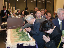 遺族側からは故人の長男・孫正寅さんが「遺志を継ぎ、これからも日本と韓国の架け橋的な役割を果たしていきたい」と述べた。最後に出席者全員が遺影の置かれた祭壇に献花した。