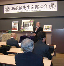 開会のあいさつで故人の功労を日本側として初めて表彰した明治大学元学長の岡野加穂留さんは「孫先生は次代を担うアジア諸国の若者に希望と未来への夢、平和を愛するというメッセージを託した。孫先生の偉業と平和の精神が明大の後輩たちに未来永劫受け継がれることを信じる」と述べた。「孫先生と明治大学」と題して報告した明治大学の寺島善一教授も「孫先生は生前、日韓の正しいスポーツ交流のあり方を我々に提示してきた。孫先生の偉大な人生をこれからも学生たちに教え続けていきたい」と涙ながらに誓った。