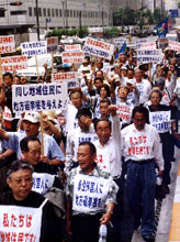 [ 地方参政権付与を訴えて都心をデモ行進する全国各地の在日同胞 ]