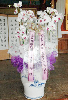 全羅南道霊岩郡にある王仁廟で3月31日、王仁文化大祭に先立ち、王仁博士春亨大祭が執り行われた。伝統儀礼儀式が行われた式典会場には民団中央本部の鄭進団長の供花(写真、吉留一夫さん撮影)も飾られた。
