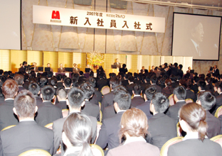 大手パチンコホールのマルハン(韓昌祐会長)は3月30日、都内で入社式を行った。新入社員は362人。