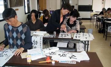 【島根】島根県民を主な対象としたハングル書道体験講座が19、20の両日、安来市と松江市で相次いで開かれた。これは民団島根県本部(李燮潤団長)の07年度事業「ちょっと覗いてみよう韓国の文化と歴史」の一環行事。ハングル書道については県日韓親善協会の設立40周年記念事業も兼ねての開催だった。講師は元金剛学園教頭の朴喜子さんが務めた。