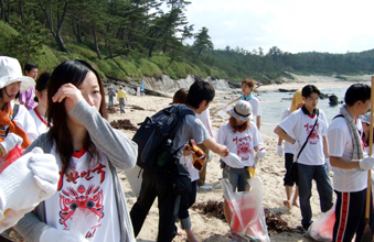青年会では、韓日環境問題への取り組みの一環として沿岸への漂着ゴミの問題に注目し、何か自分たちに出来ることはないかと考え同イベントへの参加を決めた。漂着した総ゴミ数の5%程度は韓国から流れ着いたもの。こうした漂着ゴミの問題は、国境を越えて起こっている。青年会中央本部の康孔鮮会長(33)は「今回拾ったゴミは微々たるものかもしれないが、私たちが行動することで、韓日両国への問題提起となってくれればうれしい」と訴えた。