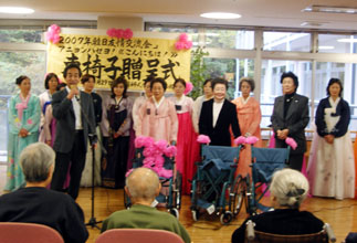 姜会長は「岩手婦人会が地域社会の方との共生共存を大切にして生きる気持ちを汲んでもらえるだけでうれしい」とあいさつした。婦人会中央の夫順末会長と余玉善副会長も同行し、激励した。岩手婦人会の会員17人は韓日両国の歌や紙芝居などで慰労した。