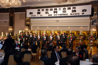 東京韓国商工会議所(呉賛益会長)は1月30日、都内のホテルで新春名刺交換会を行った。民団中央本部の鄭進団長や韓商連の崔鐘太会長、朴錫煥公使、内閣官房の岩城光英副長官、日韓親善協会中央会の越智通雄理事長、白真勲参院議員ら来賓をはじめ約200人が出席した。