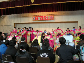 【大阪】大阪府立堺養護学校(奥野嘉彦校長)で在校生が韓国の楽器演奏と華麗な「扇の舞」で卒業生を送り出した。