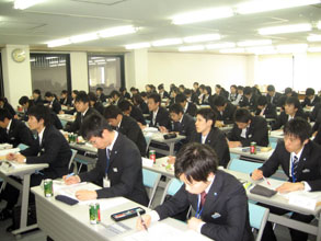新入職員は3月5〜31日、大阪・淀川の新大阪支店で研修を受け、社会人としての心構えやあいさつ、業務に関する基本的知識などを学んだ。