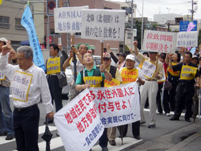 【大阪】民団大阪・此花支部(鄭弘支団長)は22日、永住外国人への地方参政権付与の必要性と北韓の暴挙に対する同胞の怒りを地域住民に知ってもらおうと、地元の大阪市此花区内を示威行進した。沿道からは「ご苦労さまです」といった拍手も送られた。