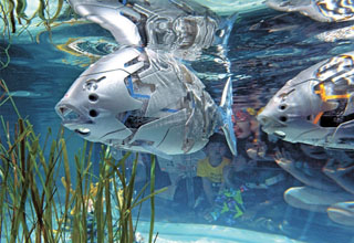 内外部に8個のセンサーがあり、障害物を避けながら泳ぎ回る。体長は49センチで、速度は毎秒80センチ。1回の充電で7時間ほど動けるが、淡水だけで、海水ではまだ動けない。