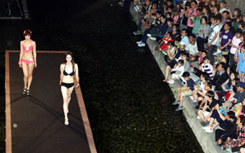 ソウル・鍾路区の清渓川五間水橋に設置されたウォーターフロント舞台で2日、「夏を迎える」水上ファッションショーが催され、ビキニ姿のモデルたちがカラフルな水着を披露した。