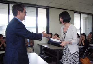審査の結果、韓国語の学習歴7年という山内静さん(静岡)が「最優秀賞」に選ばれた。山内さんは姉と一緒に韓国語学習という「共通の夢」を追いかけ、姉妹間の絆が深まったことを書いた。内容は審査員をして「完璧」とうならせるレベルだった。李壽尊総領事から賞状と記念品が贈られた。