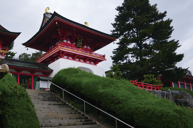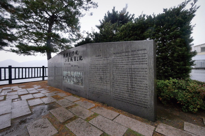関門海峡を臨む赤間神宮の水天門は、竜宮城のような形状で白壁に塗られた艶やかな朱色が際立っている。境内には平家一門を祭る七盛塚(ななもりづか)、それから阿弥陀寺を舞台にした「見なし芳一」の像があるが、朝鮮通信使関係の資料は見当たらなかった。社務所で尋ねると、参道の鳥居が見える向こう側の阿弥陀寺公園に「朝鮮通信使上陸港留之地」の碑があると教えてくれた。
