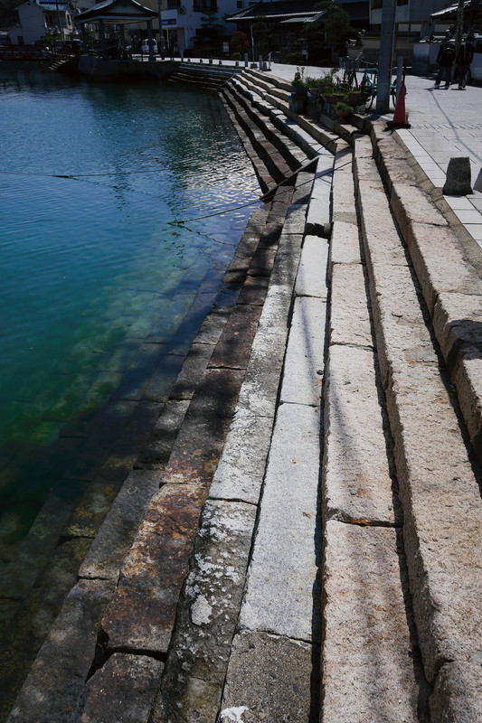 私は長雁木(がんぎ)のある船着場にも行ってみた。この雁木は、江戸時代に幕命によって広島藩主、福島正則が作ったのであるが、朝鮮通信使だけでなく琉球・オランダの使節団も、この長雁木(長さ約113メートル、11段)から上陸したと案内板に記されていた。現在は長さが約55・5メートルと短くなり、3段増えている。(1952年に地盤沈下、高潮対策で段が増えた)