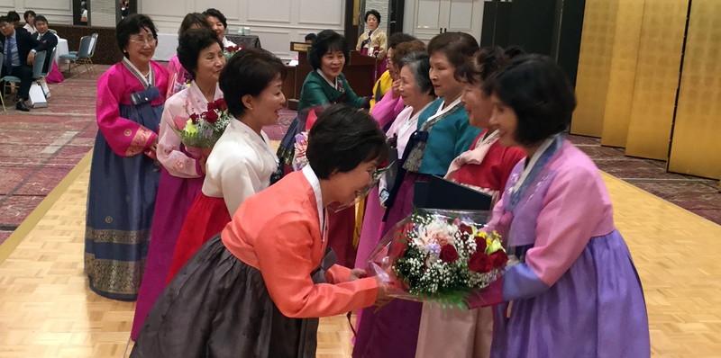 金会長は「皆さんとともにこれからもっと婦人会を発展させていく」と決意を語った。婦人会活動に功労のあった会員6人には役員が花束を手渡した。このうち5人には金団長が「団長賞」を贈った。