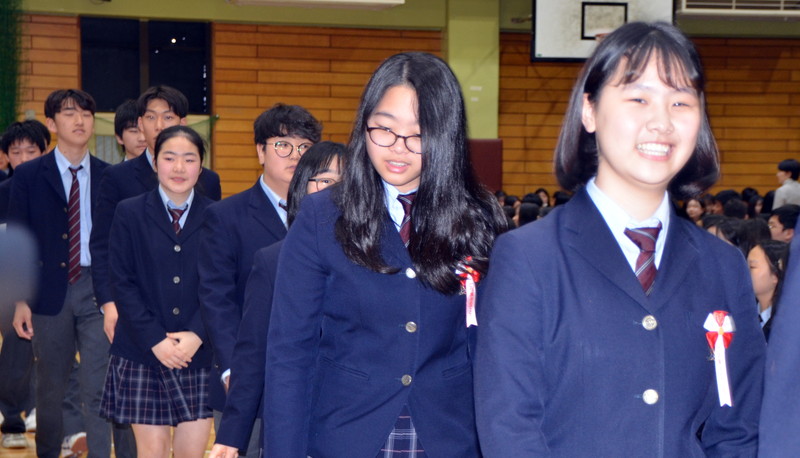 東京韓国学校中等部(呉公太理事長、郭尚勲校長)は15日、同校講堂で中等部118人の卒業を祝った。郭校長が卒業生代表に証書を授与。呉公太理事長が激励辞を述べた。理事長賞と校長賞もそれぞれ贈られた。