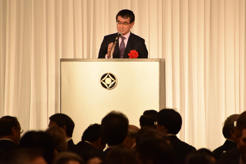 [ さらなる日韓関係発展をめざそうと強調する河野太郎外務大臣 ]