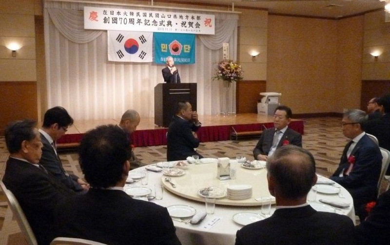 【山口】民団山口本部(林源玉団長)も11日、下関市のシーモールパレスに120人を招いて創団70周年を祝った。