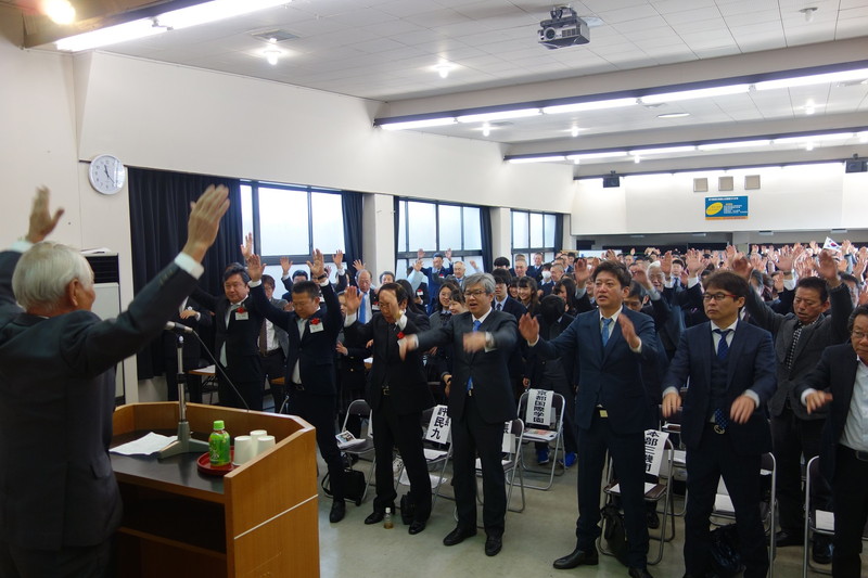 南照男東京本部議長が決議文を朗読し、満場一致で採択された。