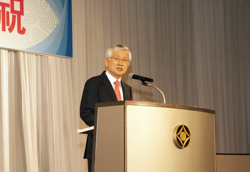 [ 乾杯の音頭を取る額賀福志郎日韓議員連盟会長 ]