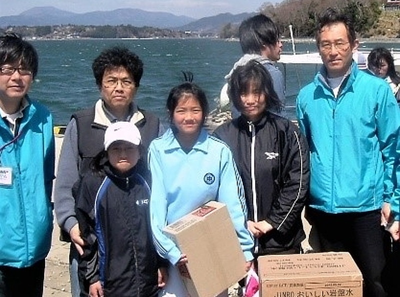 [ 2011年、民団宮城本部が気仙沼に支援物資を届けた時の朴孝淑さん一家 ]