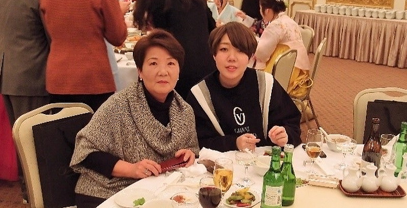 [ 2019年1月6日の民団主催の成人式に参加した李賢淑さんと長女美紀さん ]