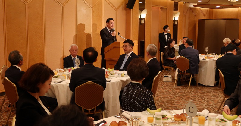 また、民団は同日午前、一足先に来日した韓日議員連盟の鄭鎭碩会長ら一行と東京都内のホテルで朝食会を兼ねた懇談会を行った。