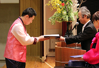 河校長は「人生のゴールは人間、個人としての独立、自立にある。努力を惜しまない、他人を思いやれる人になれ」とはなむけの言葉を贈った。駐大阪総領事館の朴敬洙教育担当領事は、「急がず、他人を責めず、失敗をおそれないクライマーたれ」と祝辞を述べた。