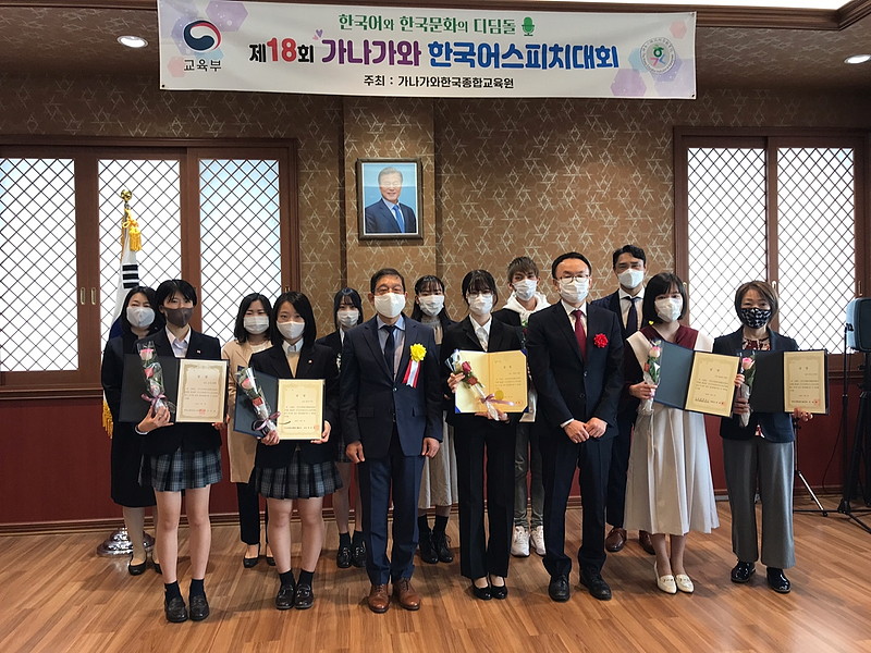 【神奈川】神奈川韓国綜合教育院(李相曄院長)は16日、駐横浜総領事館(尹喜粲総領事)で「第18回神奈川韓国語スピーチ大会」の授賞式を行った=写真。大会は3日、新型コロナウイルスのため、発表映像によるオンライン方式で行われた。