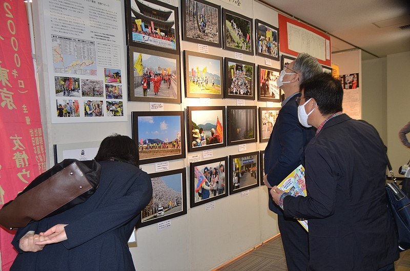 展示パネルは関連資料を含め約100点。「川越唐人パレード」は昨年まで15年間の歩みを歴代のポスターやパネル写真で振り返った。また、2007~19年まで7次にわたってソウルー東京間を踏破してきた「友情ウオークの会」では主な道程と韓国と日本での思いがけない歓迎ぶりを中心に紹介した。