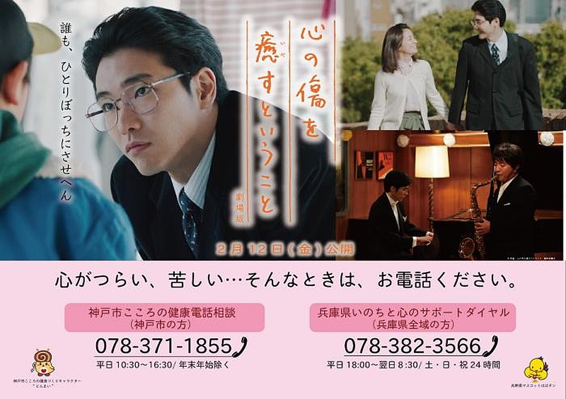 【兵庫】映画「心の傷を癒すということ」の全国公開に合わせ、神戸市がコロナ過で心の悩みを抱える人たちのための啓発活動に乗り出した。同映画制作委員会と神戸市・兵庫県・JR西日本・神戸フィルムオフィスによるコラボ企画で、神戸医師会の協力を得て実現した。