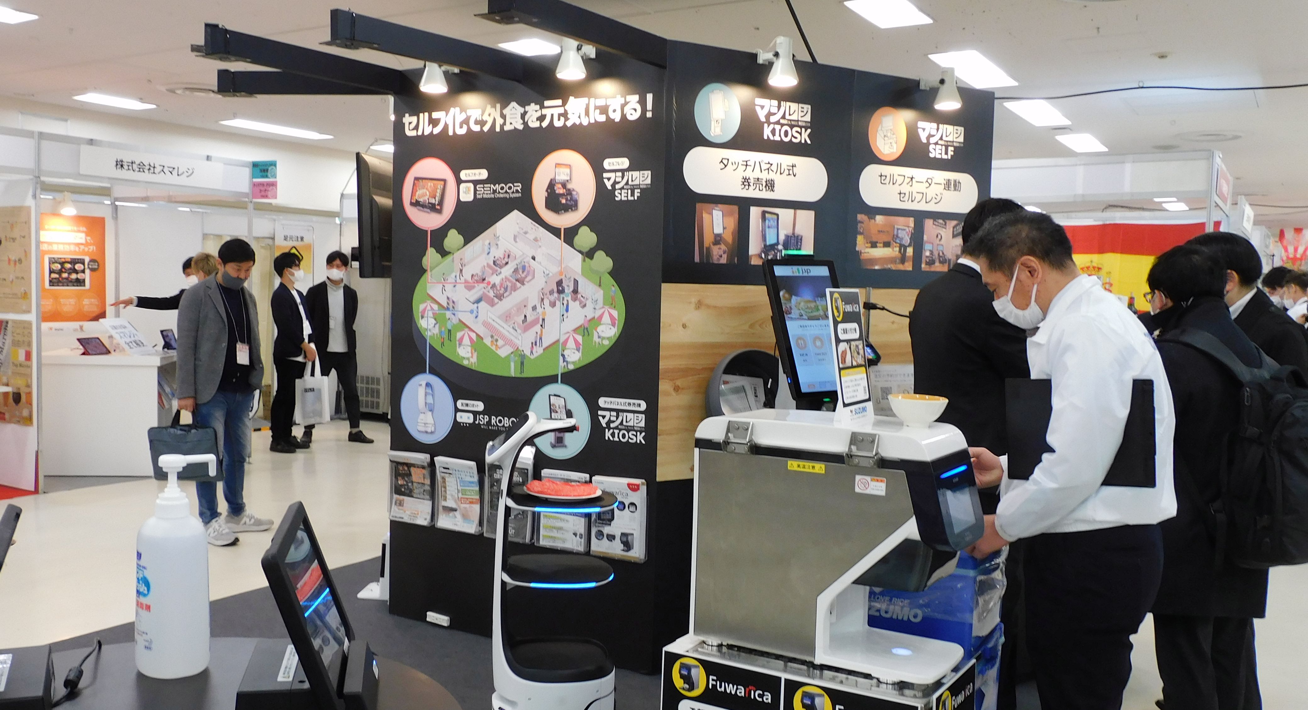店舗運営機器ではコロナ禍で非対面・非接触の自動化システムの提案が複数見られた。ある券売機メーカーが近日、リリースを予定しているのはオーダーから支払いまで待たずにセルフで完結するというもの。