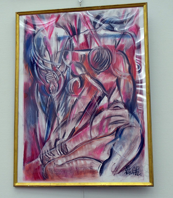 両作品ともクーデターでミャンマー政権を掌握した軍部から弾圧される反対派の姿を描いたパステル画。