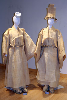今展ではソウル女子大学校衣類学科で所蔵している韓国伝統服飾のなかから、うぶぎ、子ども服、成人服、冠婚葬祭各種の礼服など120余点を紹介する。