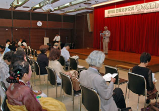 韓国からは安在珍団長をはじめとする16人、日本側からも在日同胞を含む35人が参加し、それぞれ交互に自作の詩を朗読し、鑑賞しあった。司会は金一男さん(「時調の会」同人、民団川崎支部議長)が務めた。