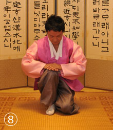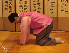 最敬意表す年長者に 大拝礼(クンジョル)は、男性の場合は稽首拝(ケスべ)、女性の場合は肅拝(スックペ)という名称で呼ばれている。