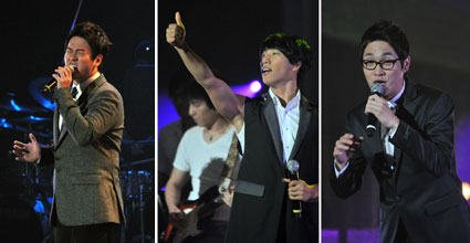 [ 21曲を披露しファンを魅了したsg WANNABE+(左から金勇俊、金振浩、李碩薫=9日、東京渋谷C.C.Lemonホールで) ]