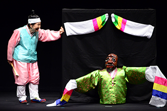 日本初公開の「パルタル」は、黒幕からタル(仮面)を付けたパル(足)を操り、幕の外に立つ役者と掛け合いで、歌い、踊り、演じる芸能。朝鮮朝時代に全国を放浪しながら農楽などを披露した、旅芸人一座「男寺堂(ナムサダン)」の人形劇の一つといわれている。