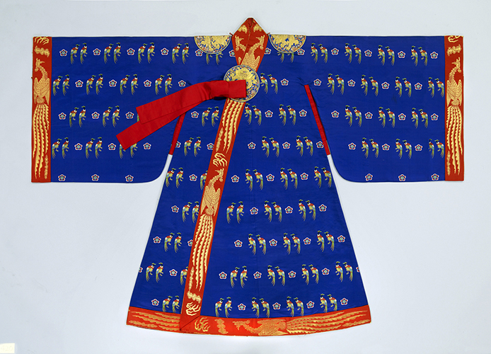 復元した王と王妃、貴族、文官、武官の衣装(写真は皇后の大礼服)をはじめ、婚礼用として使用された繍褓、史官の品階を示す装身具の胸背などを展示する。